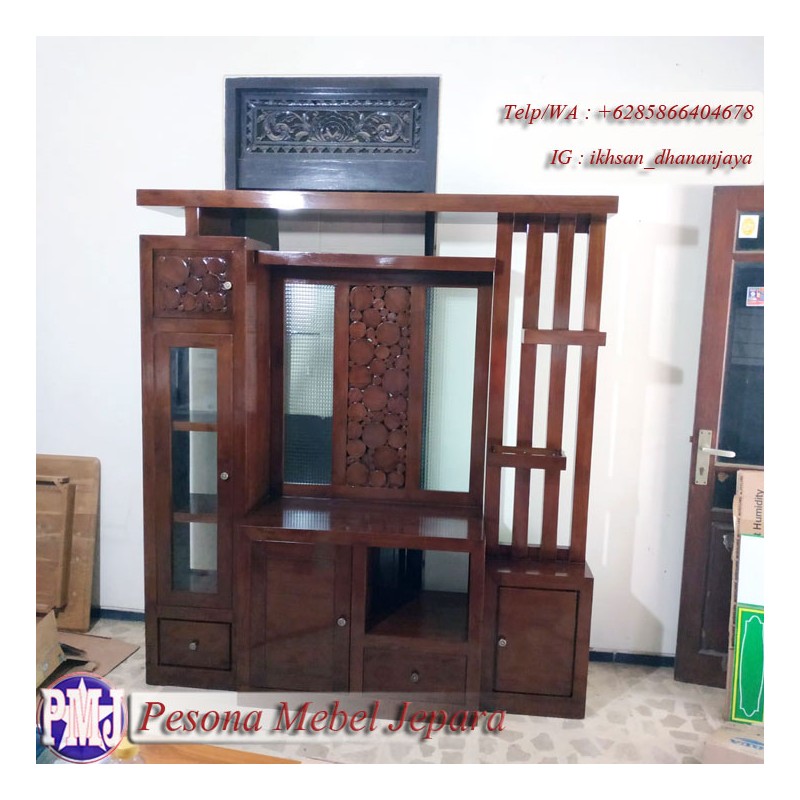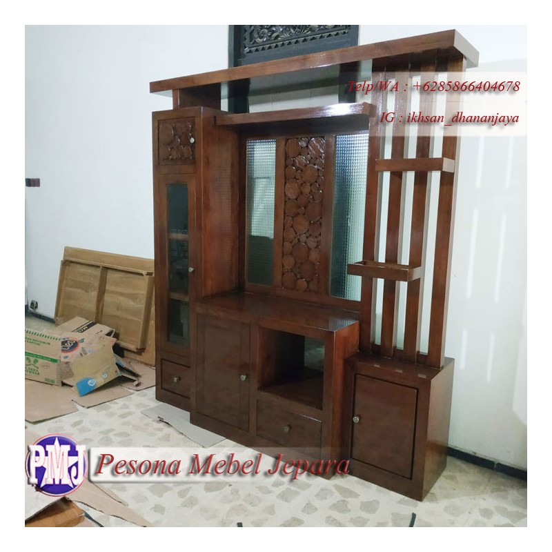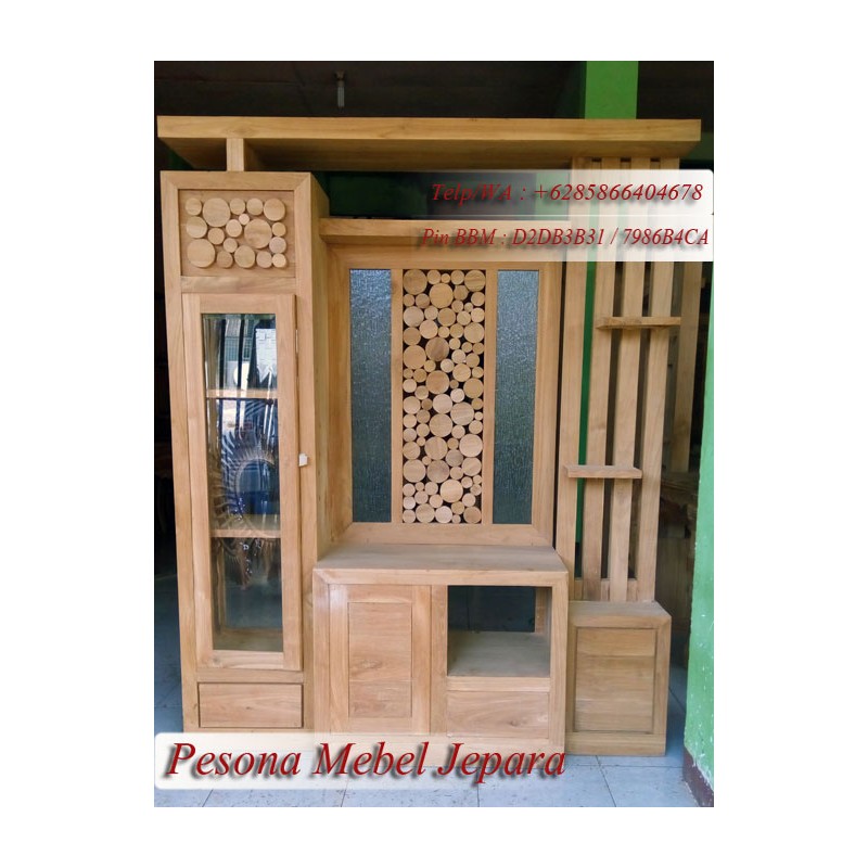 Bufet TV Partisi atau Partisi Ruangan Minimalis Kayu Jati Salur Koin