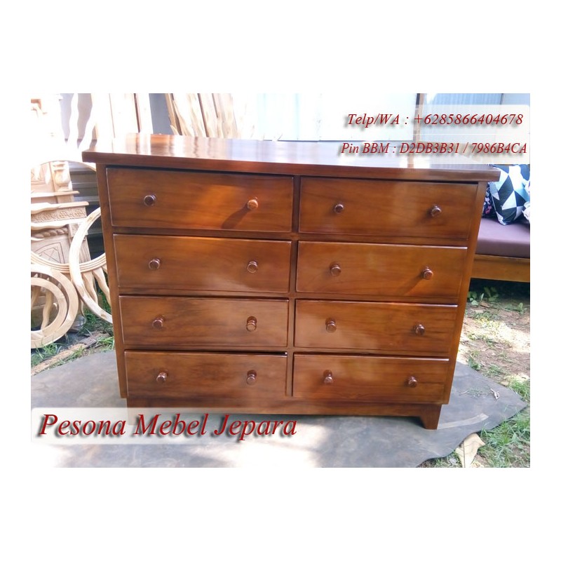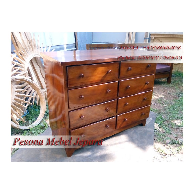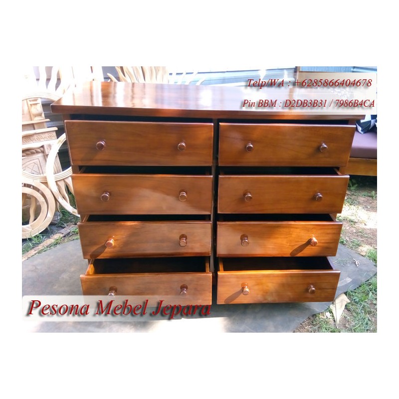 Bufet atau Nakas Minimalis Laci 8 atau Teak 8 Drawers Minimalis Pesona Mebel Jepara.