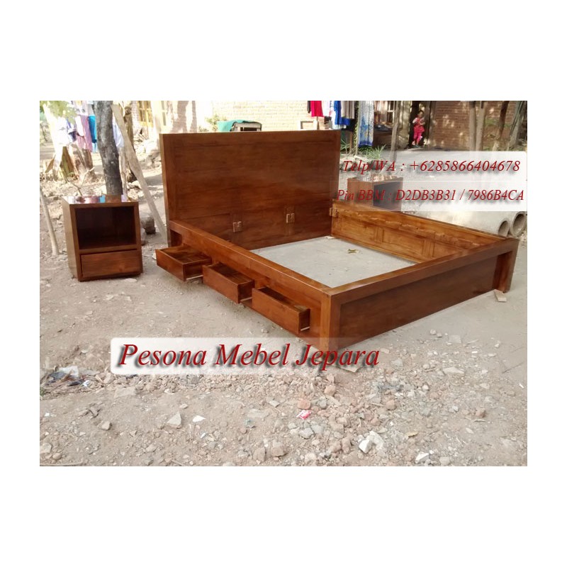 Dipan Minimalis Kayu Jati Laci 3 Ukuran 180x200 cm Pesona Mebel Jepara.
