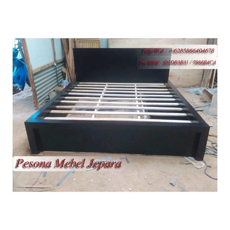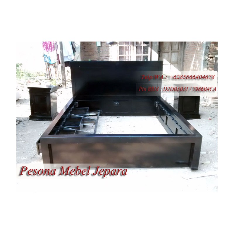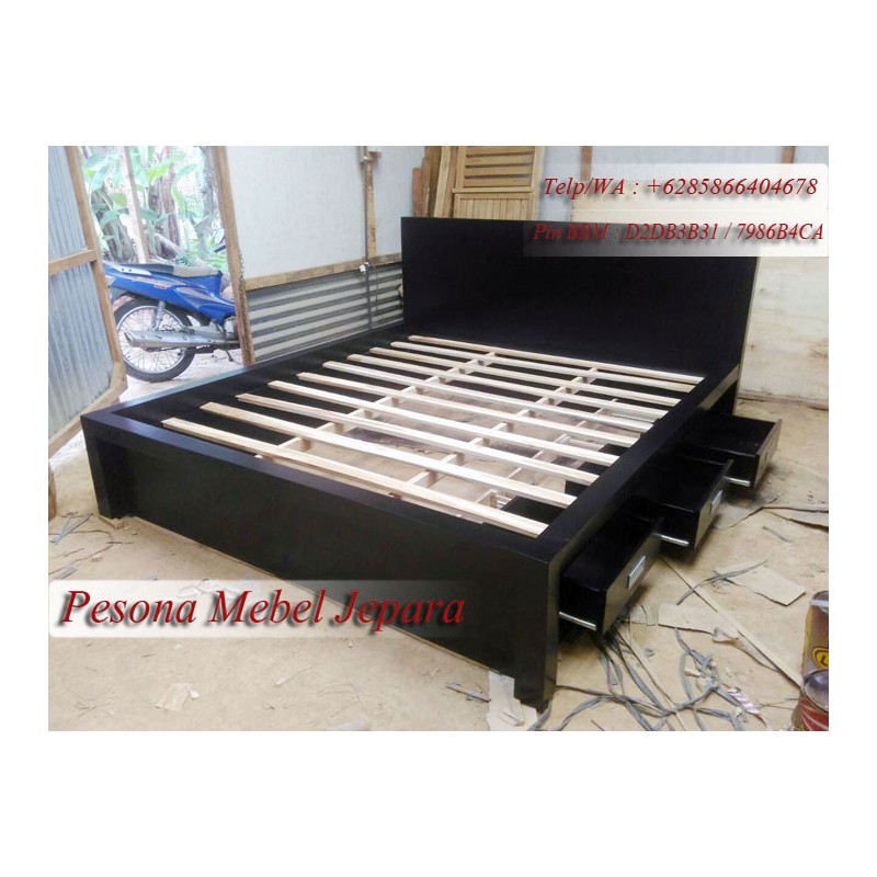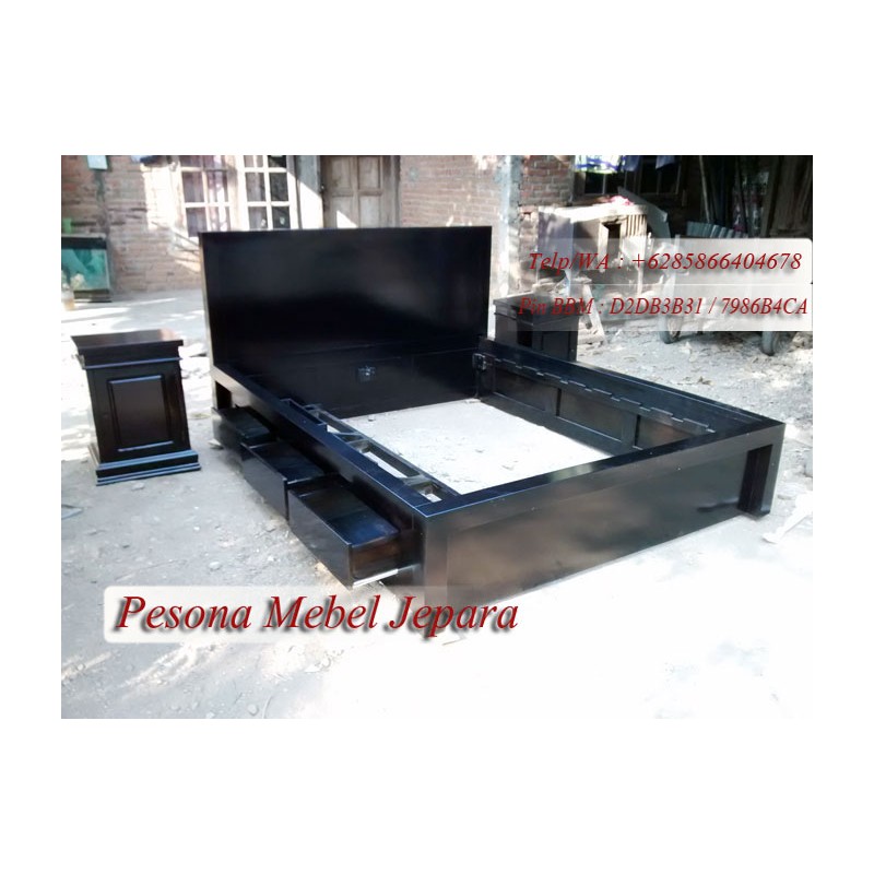 Ranjang atau Dipan Minimalis Hitam Kayu Jati Laci 3 Ukuran 180x200 cm Pesona Mebel Jepara.