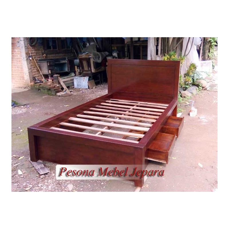 Ranjang atau Dipan Minimalis Kayu Jati Laci 2 Ukuran 120x200 cm Pesona Mebel Jepara.