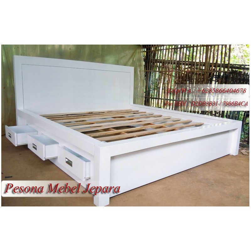 Dipan Minimalis Laci 3 Duco Ukuran 180x200 cm Kayu Jati.