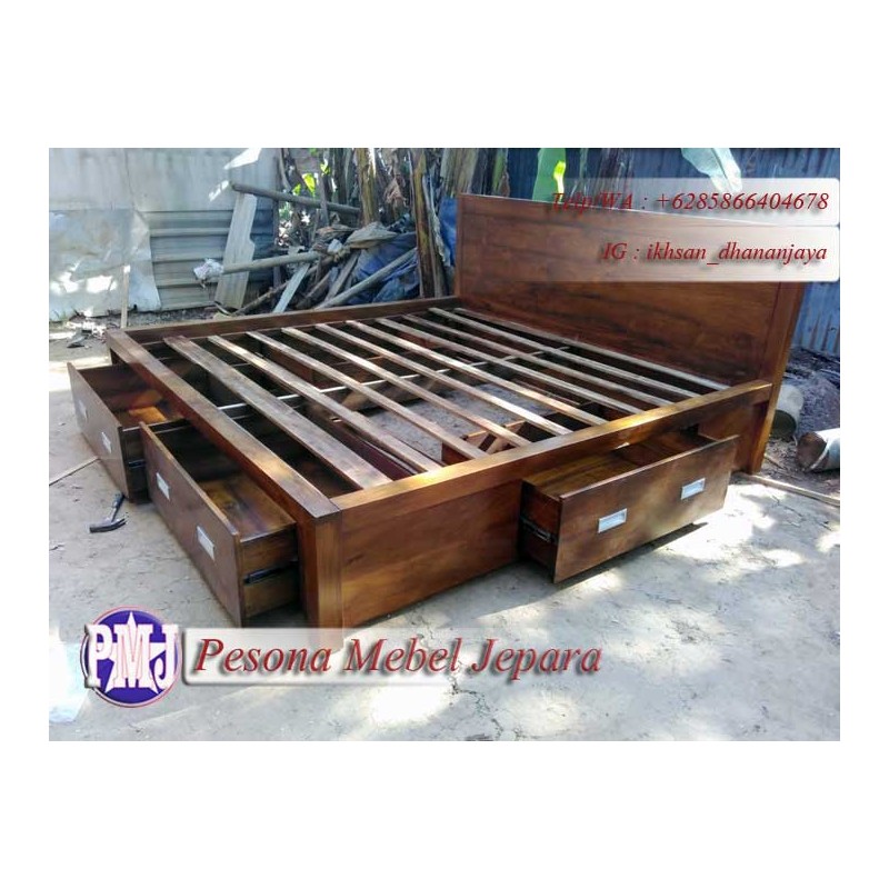 Ranjang atau Dipan Minimalis Laci 4 Jumbo Ukuran 200x200 cm Kayu Jati Pesona Mebel Jepara.