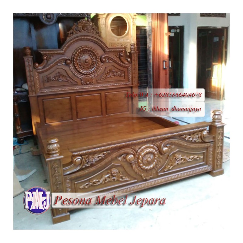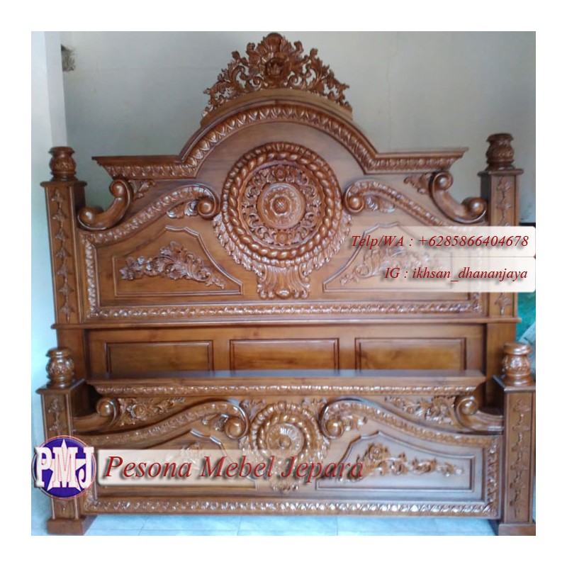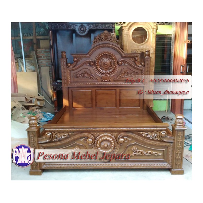 Ranjang atau Dipan Gong Full Ukir Kayu Jati Perhutani
