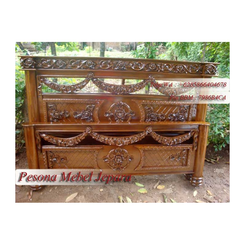 Ranjang atau Dipan Ukir Selendang Kayu Jati Pesona Mebel Jepara