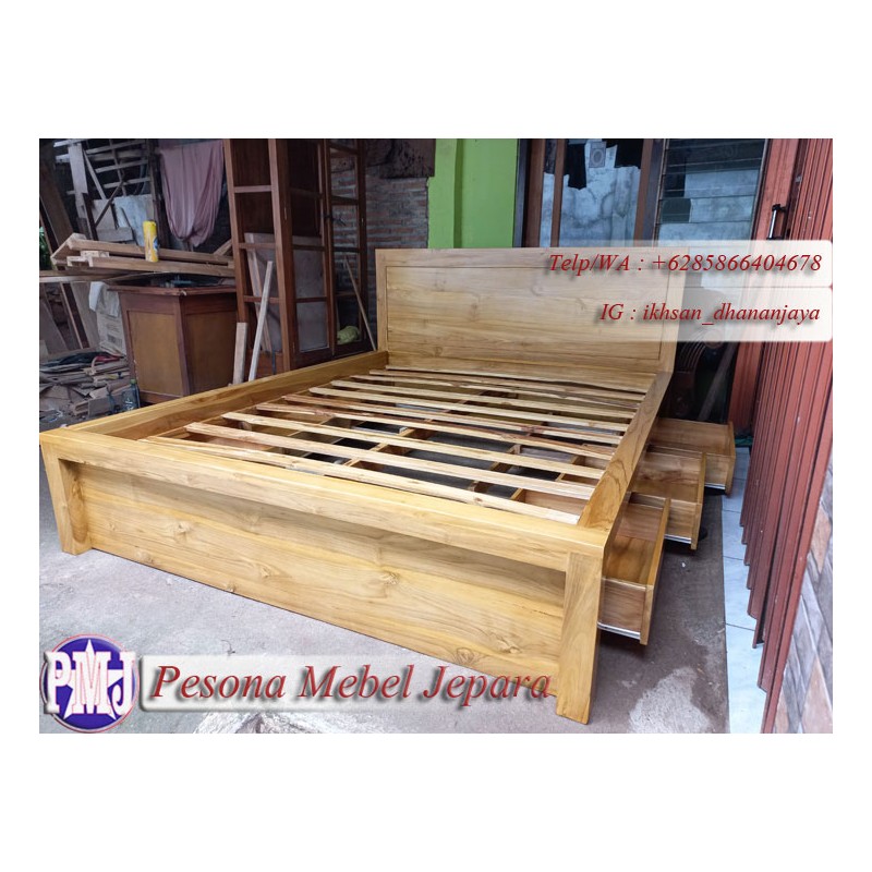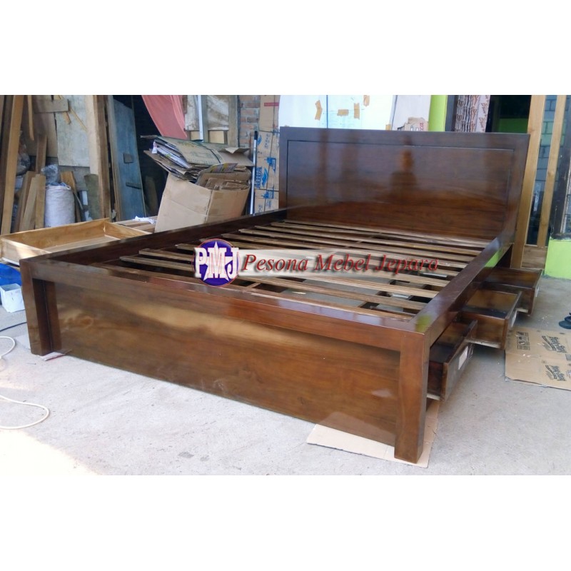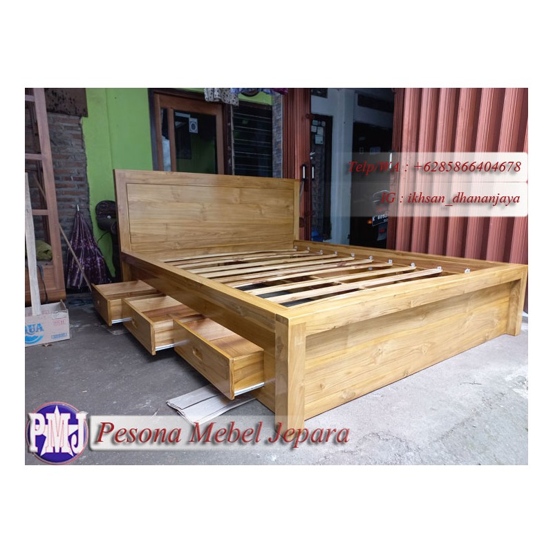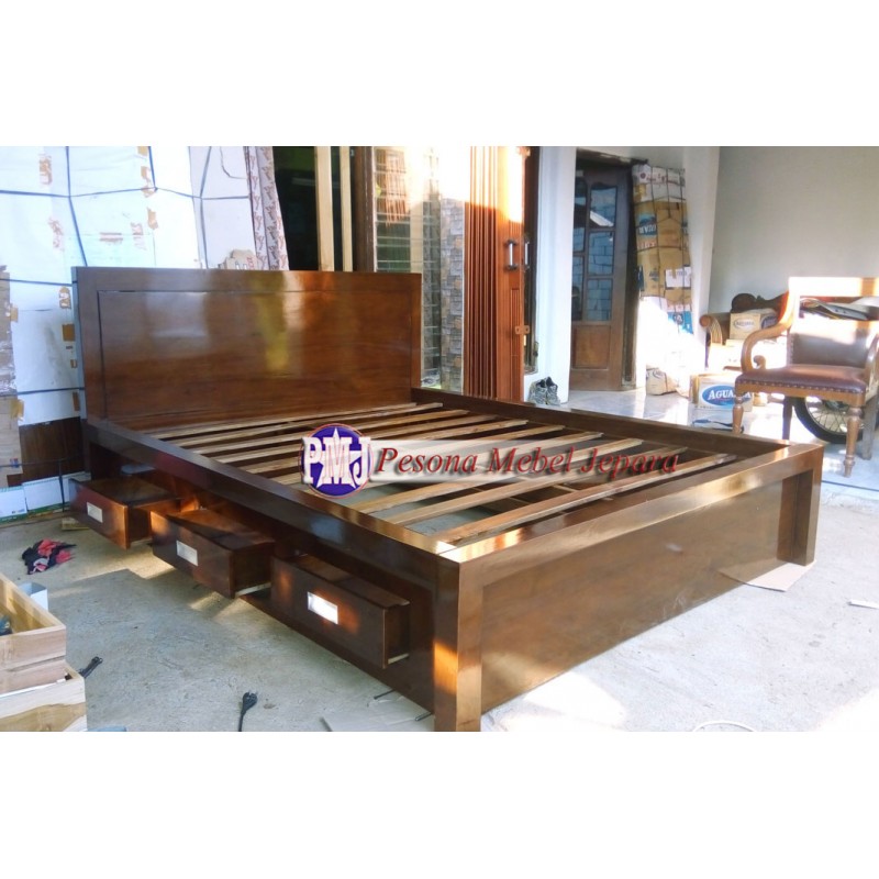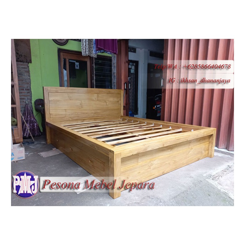Dipan Minimalis Kayu Jati Laci 6 Ukuran 160x200 cm Pesona Mebel Jepara