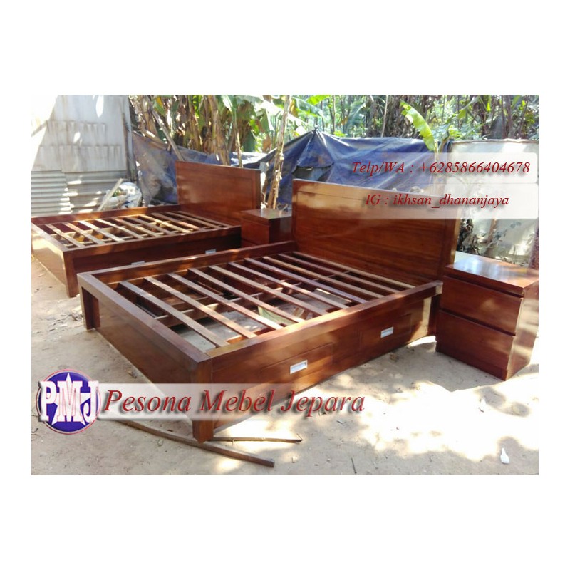 Dipan atau Ranjang Minimalis Kayu Jati Laci 4 Ukuran 160x200 cm Pesona Mebel Jepara.