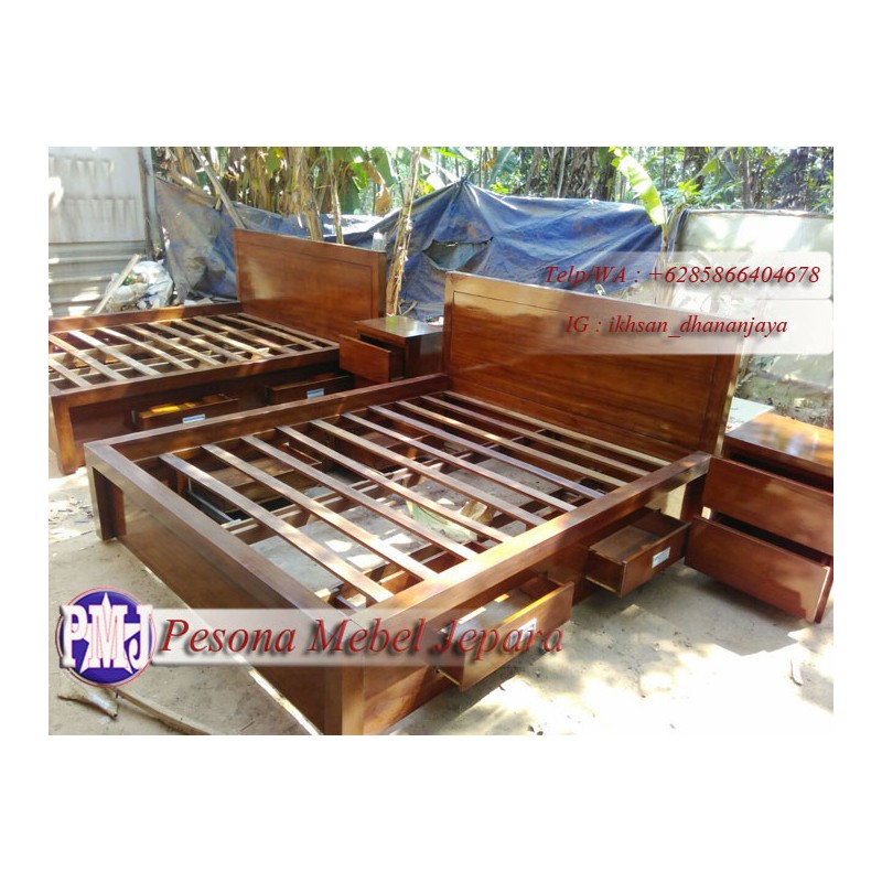 Dipan atau Ranjang Minimalis Kayu Jati Laci 4 Ukuran 160x200 cm Pesona Mebel Jepara