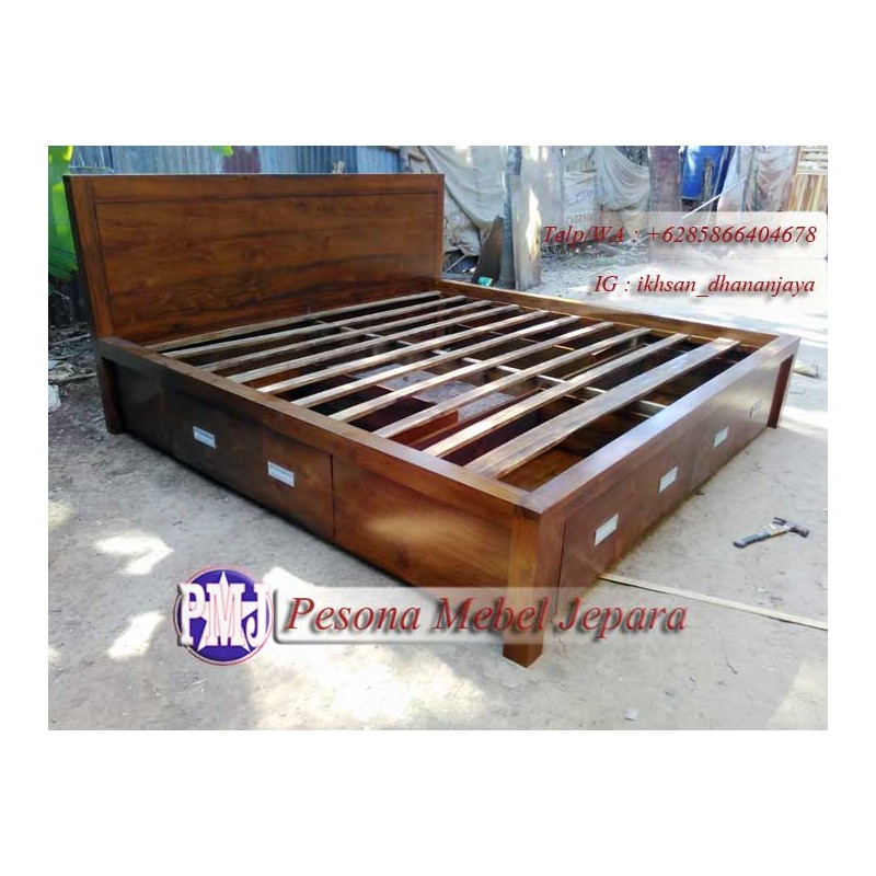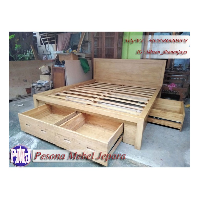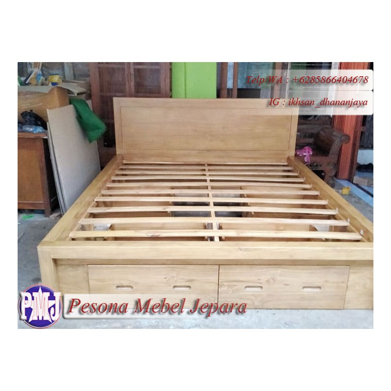 Ranjang atau Dipan Minimalis Laci 4 Jumbo Ukuran 180x200 cm Kayu Jati Pesona Mebel Jepara