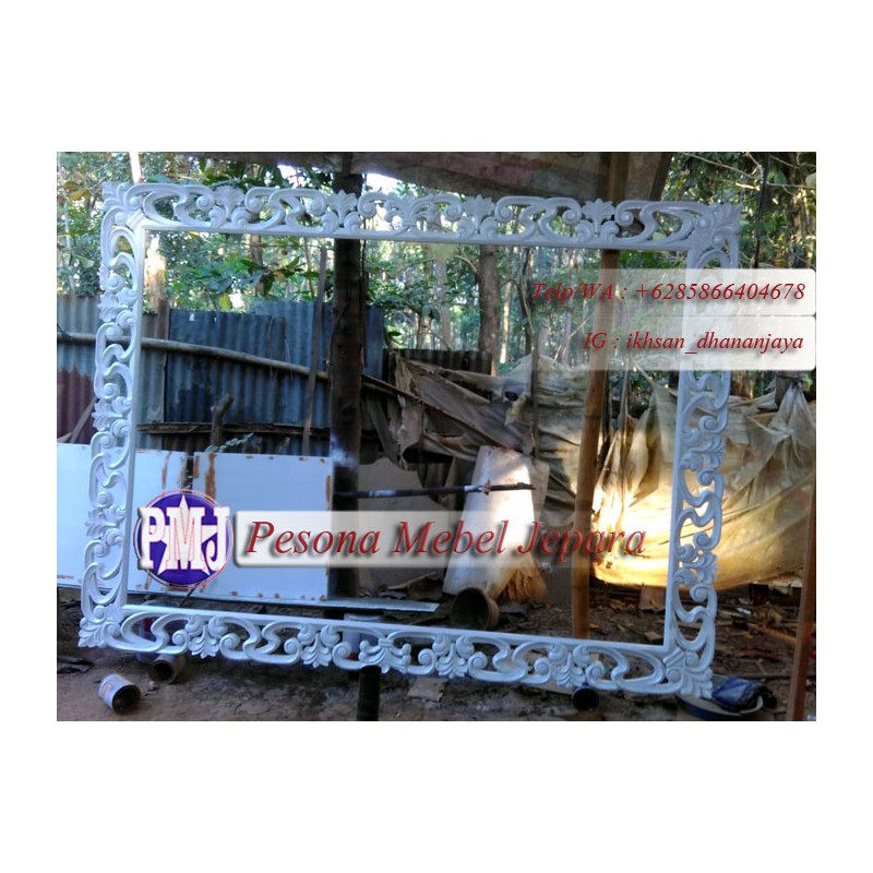 Bingkai atau Frame atau Pigura Cermin Ukir Motif Lung Kelapa Jumbo kayu Mahoni Oven