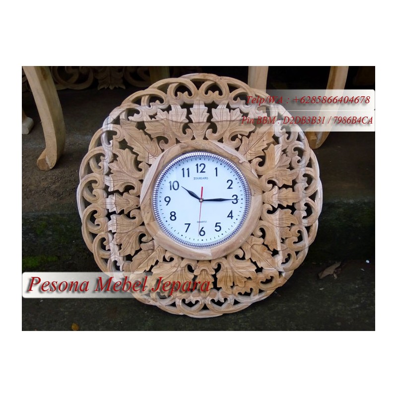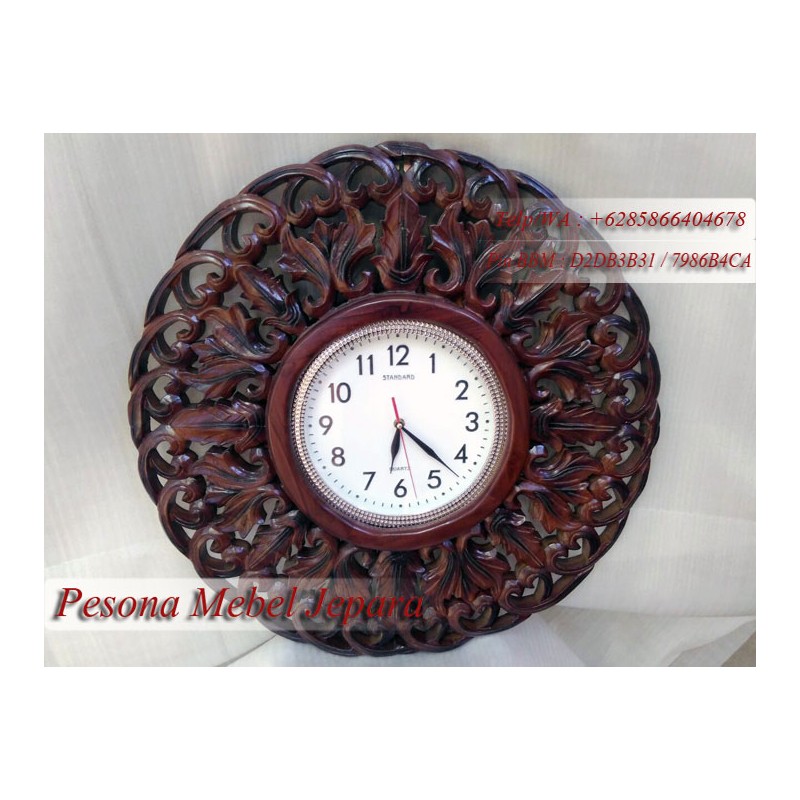 Jam unik dengan ukiran model daun matahari krawangan khas Jepara.