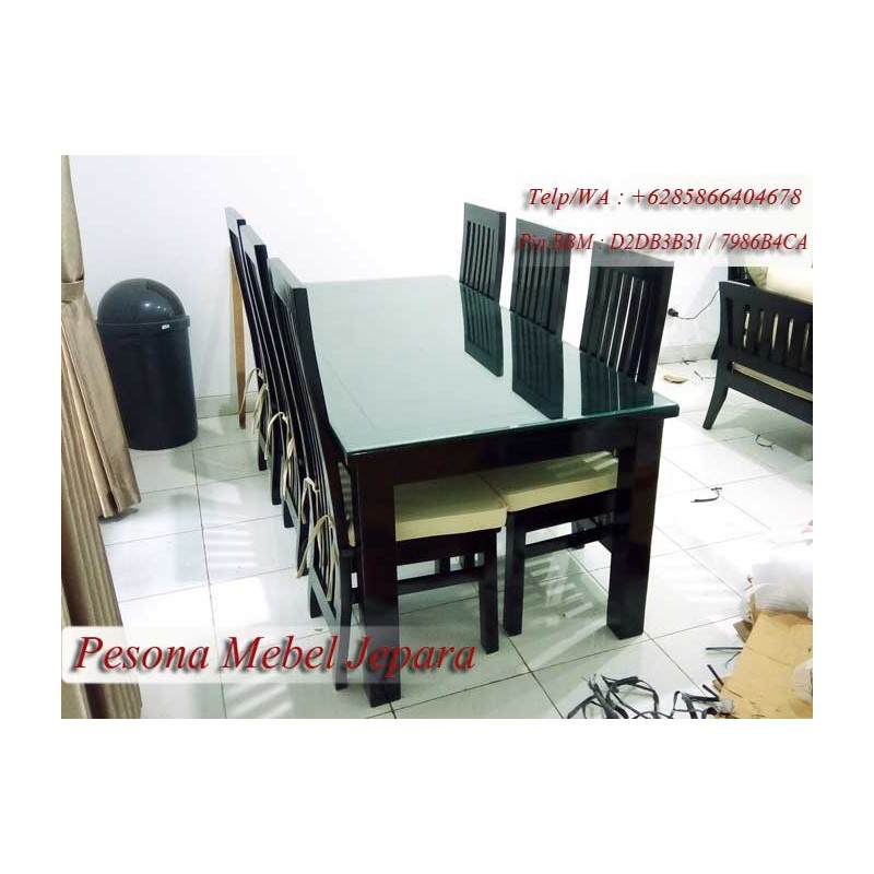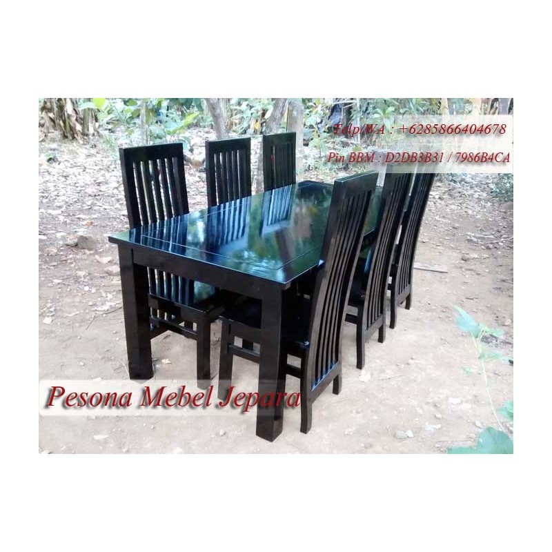 Meja Makan Kursi 6 Balero Salur Hitam Kayu Jati Pesona Mebel Jepara.