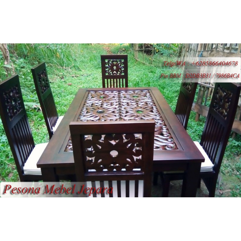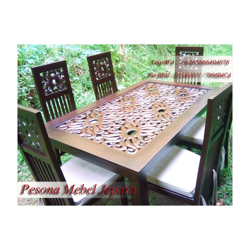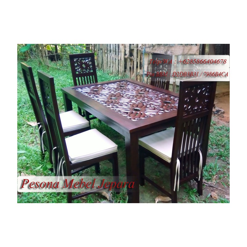Meja Kursi Makan Motif Cumi-cumi Kayu Jati Pesona Mebel Jepara.