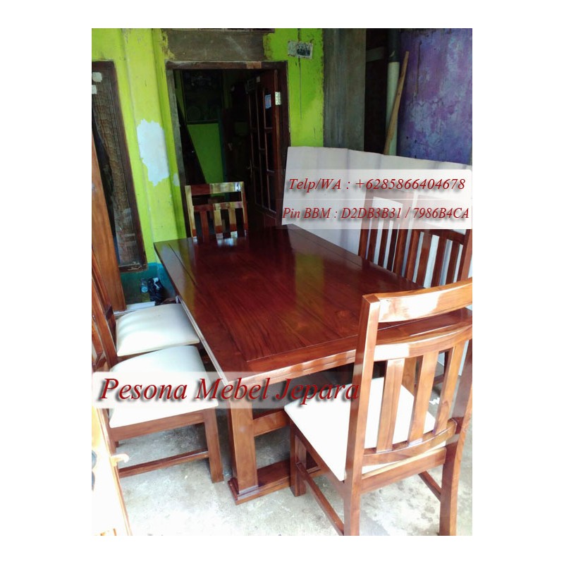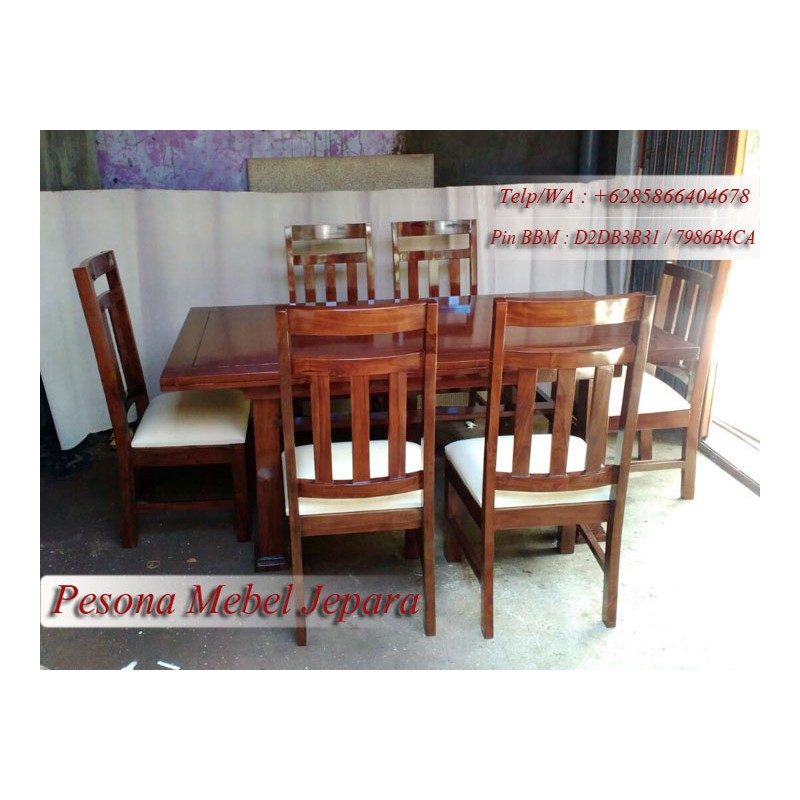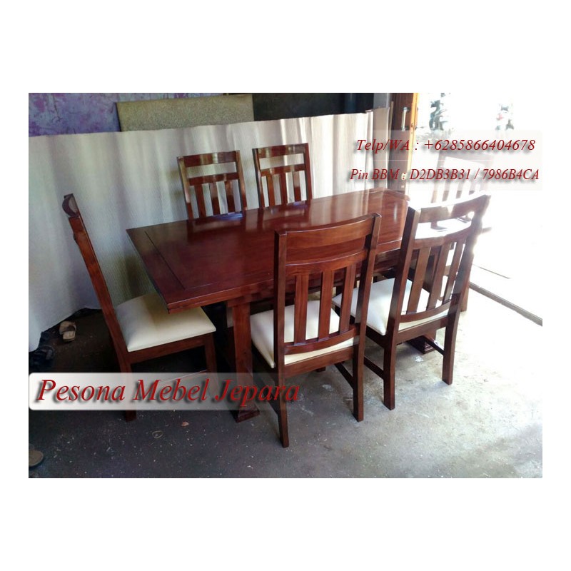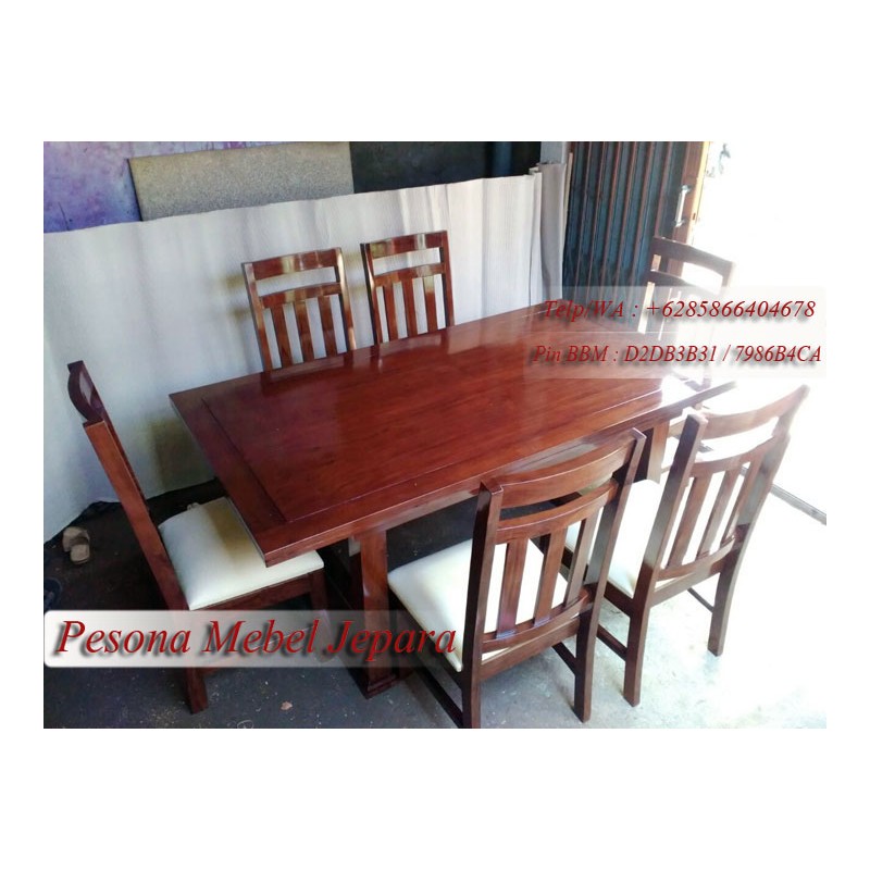 Meja Makan Minimalis Jok Kursi 6 Ruji-ruji Kayu Jati Pesona Mebel Jepara.