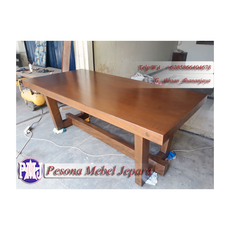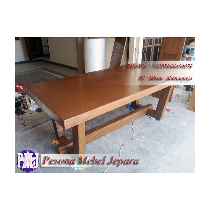 Meja Makan Kayu Trembesi Solid atau Kayu Suar Solid Tebal.