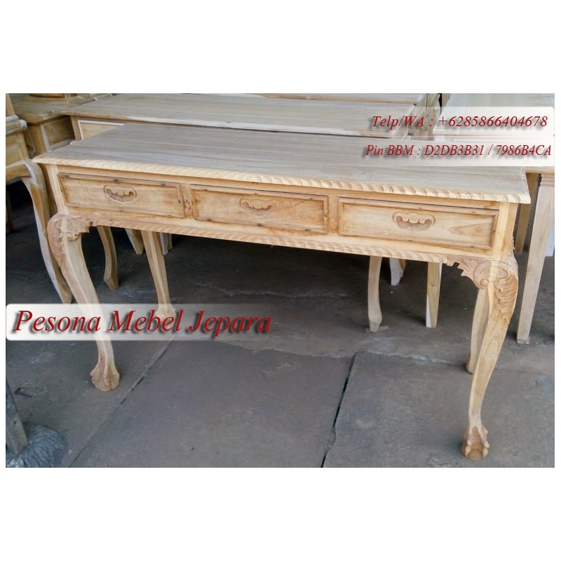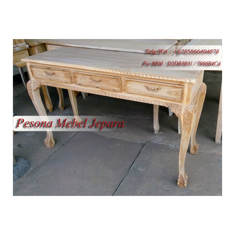 Meja Konsul Ukir atau Meja Console Ukir Laci 3 Model Kaki Kambing Pesona Mebel Jepara