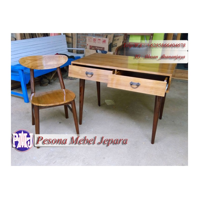 Set Meja Kursi Belajar atau Meja Kerja atau Meja Kantor Minimalis Model Retro Kayu Jati