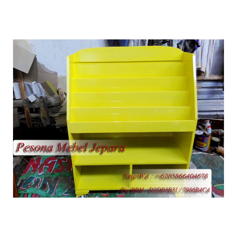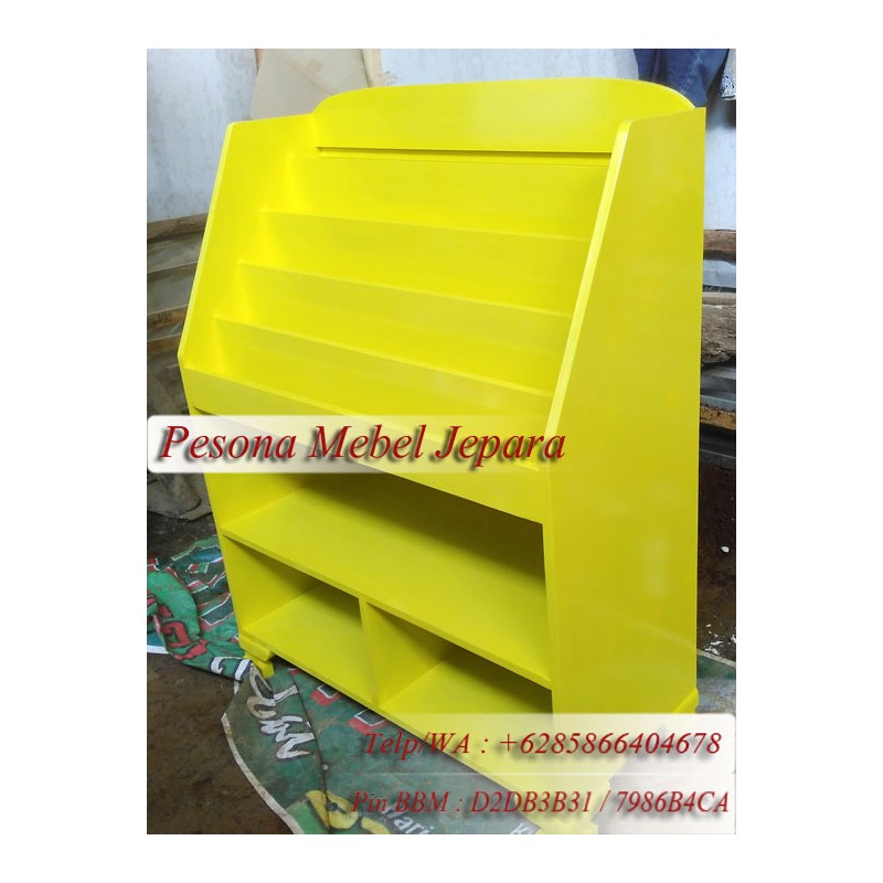 Rak buku anak pintar dengan warna-warna menarik seperti kuning muda, rak buku susun warna menarik yang didesain untuk menstimulasi anak supaya gemar membaca.