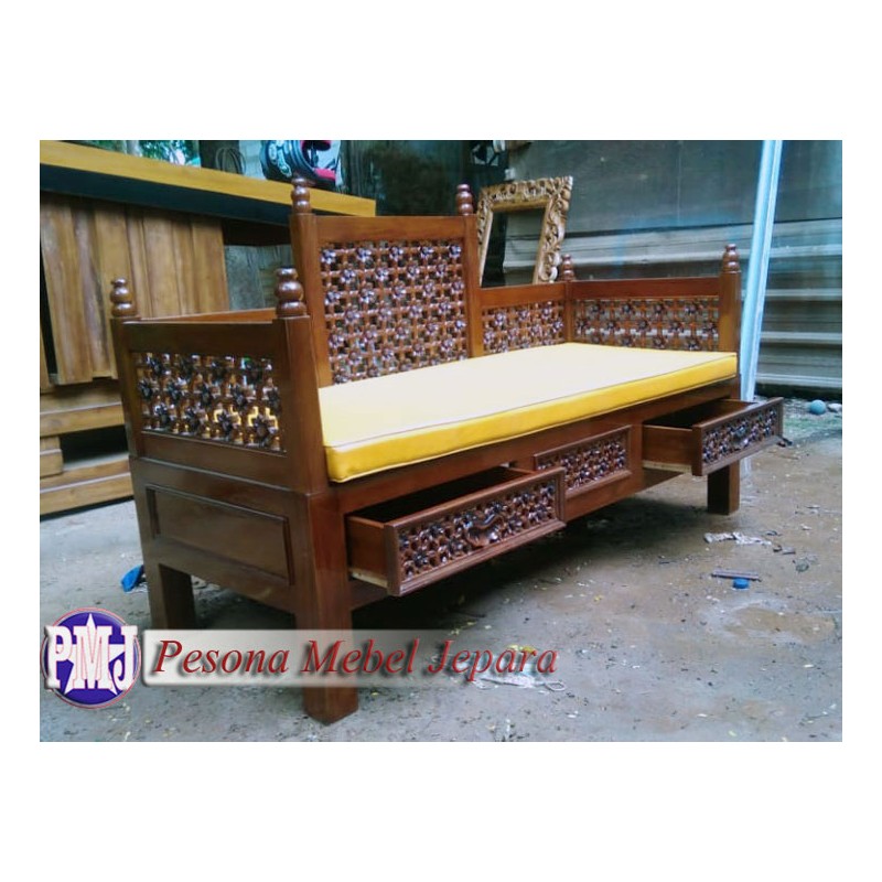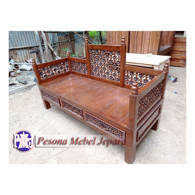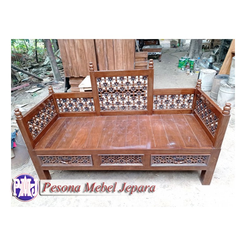 Bangku atau Sofa atau Bale-bale Kayu Jati Ukiran Seribu Bunga Pesona Mebel Jepara