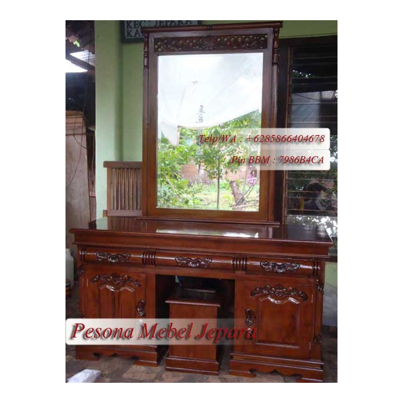 Meja Rias Ukir Peluru atau Tolet Peluru Kayu Jati Pesona Mebel Jepara.