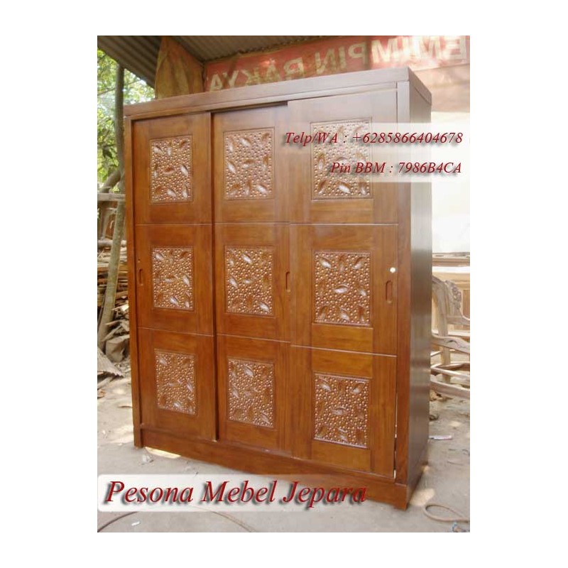 Lemari Pakaian Minimalis Pintu 3 Sliding Motif Meteor Daun Pesona Mebel Jepara.